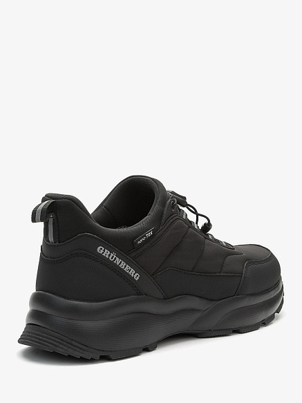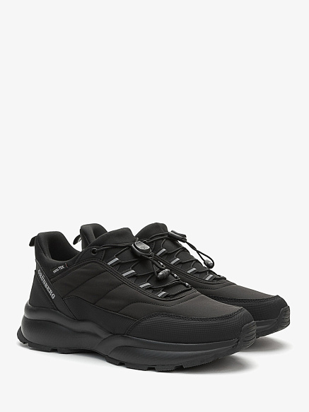 Удобные практичные полуботинки базового черного цвета идеально подойдут для долгих прогулок. Модель выполнена из плотного текстиля с использованием специальных водонепроницаемых материалов. Абсорбирующая подкладка из текстиля с NanoTex мембраной создает оптимальный микроклимат внутри обуви. Затягивающаяся шнуровка на резинке и петля на пятке позволяют обуваться быстро и легко. Инновационная нескользящая подошва с амортизацией обеспечивает комфорт в любую погоду.