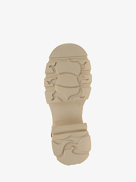 Ультрамодная обувь этого сезона — бежевые ботинки из матовой высокотехнологичной кожи с имитацией джинсов. Модель дополнена утепленной подкладкой и стелькой из ворсина. Потайная молния позволяет быстро обуваться. Массивная тракторная подошва обладает легким весом и амортизирует при ходьбе.